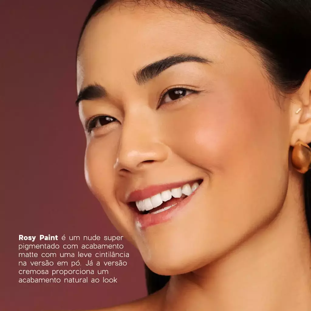 A cor Rosy Paint é um nude bem pigmentado que traz um aspecto saudável para o seu look. A versão em pó tem um acabamento matte com uma leve cintilância e a versão cremosa confere um acabamento bem natural. E tem mais: o Duo Blush tem fórmula vegana e está disponível em outras 5 cores, além da Rosy Paint.